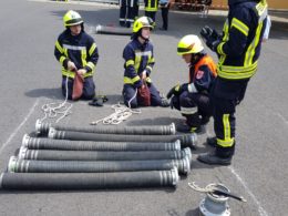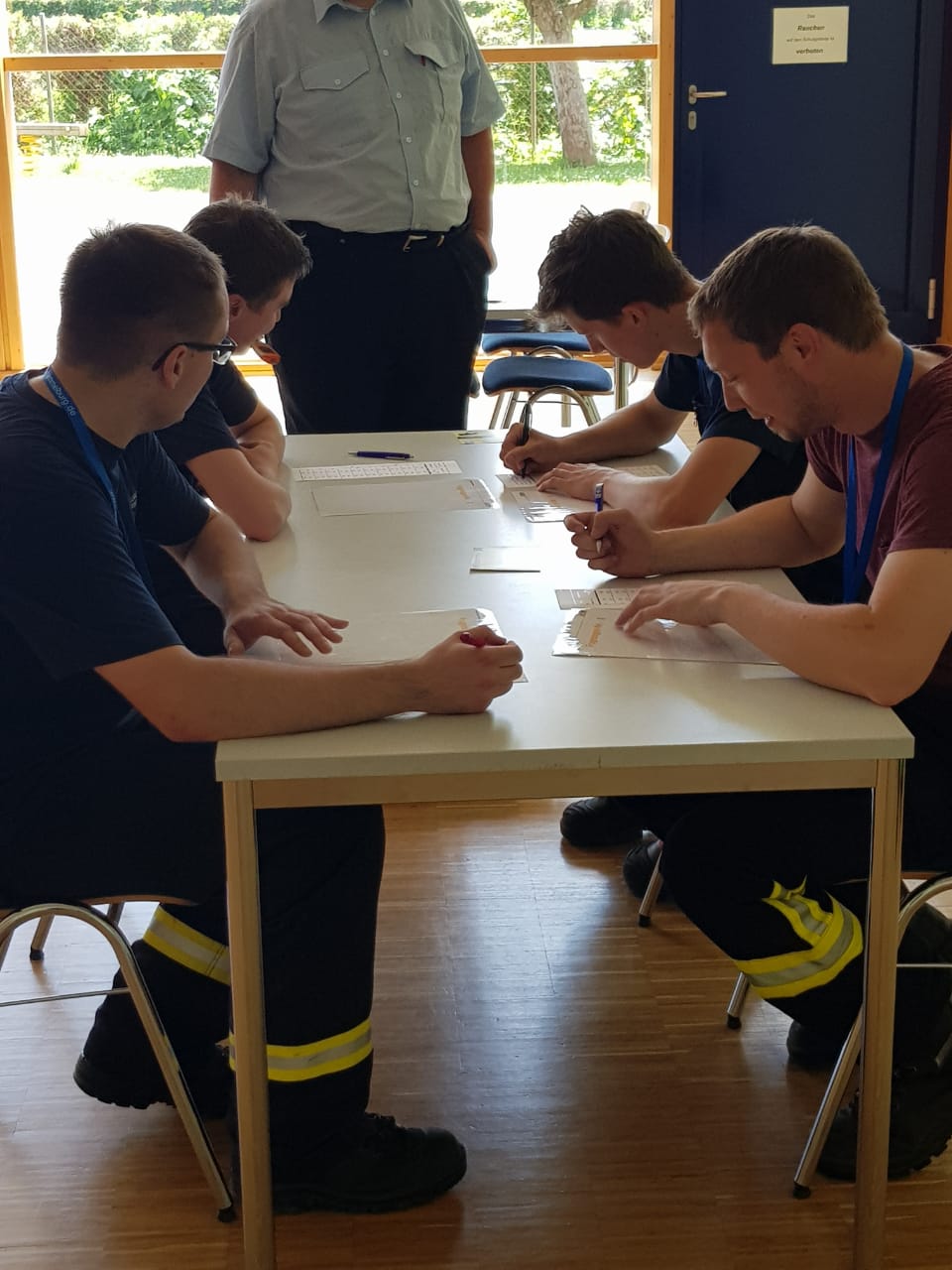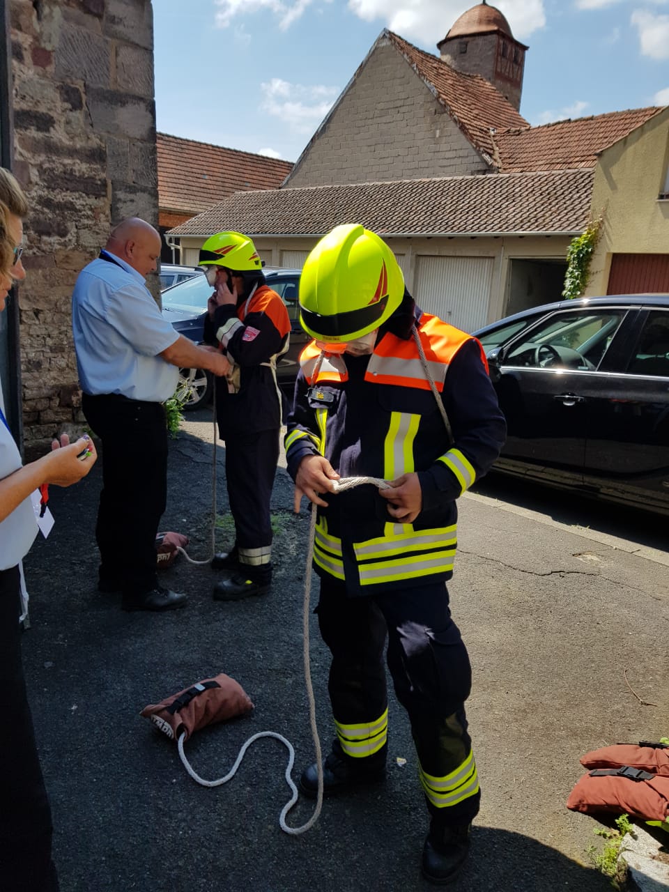 Bei ansehnlichen sommerlichen Temperaturen ging es los. Ein vordefinierter Weg quer durch Hammelburg musste abgelaufen werden. An Zwischenstationen mussten feuerwehrtechnische Aufgaben erfüllt werden. Hierbei wurde großer Wert auf die korrekte Ausrüstung der Teilnehmer, die fachgerechte Umsetzung der Aufgabe und auf die Zeit gelegt, sowie mit Punkten bewertet.
