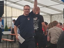 Bereits in den frühen Morgenstunden brachen die Wettbewerbsteilnehmer aus Oberthulba auf, um pünktlichst zur „Startkontrolle“ in Hammelburg anwesend zu sein. Im Festzelt hatten sich bereits einige andere Feuerwehren mit Bollerwagen und Reiseproviant eingefunden.