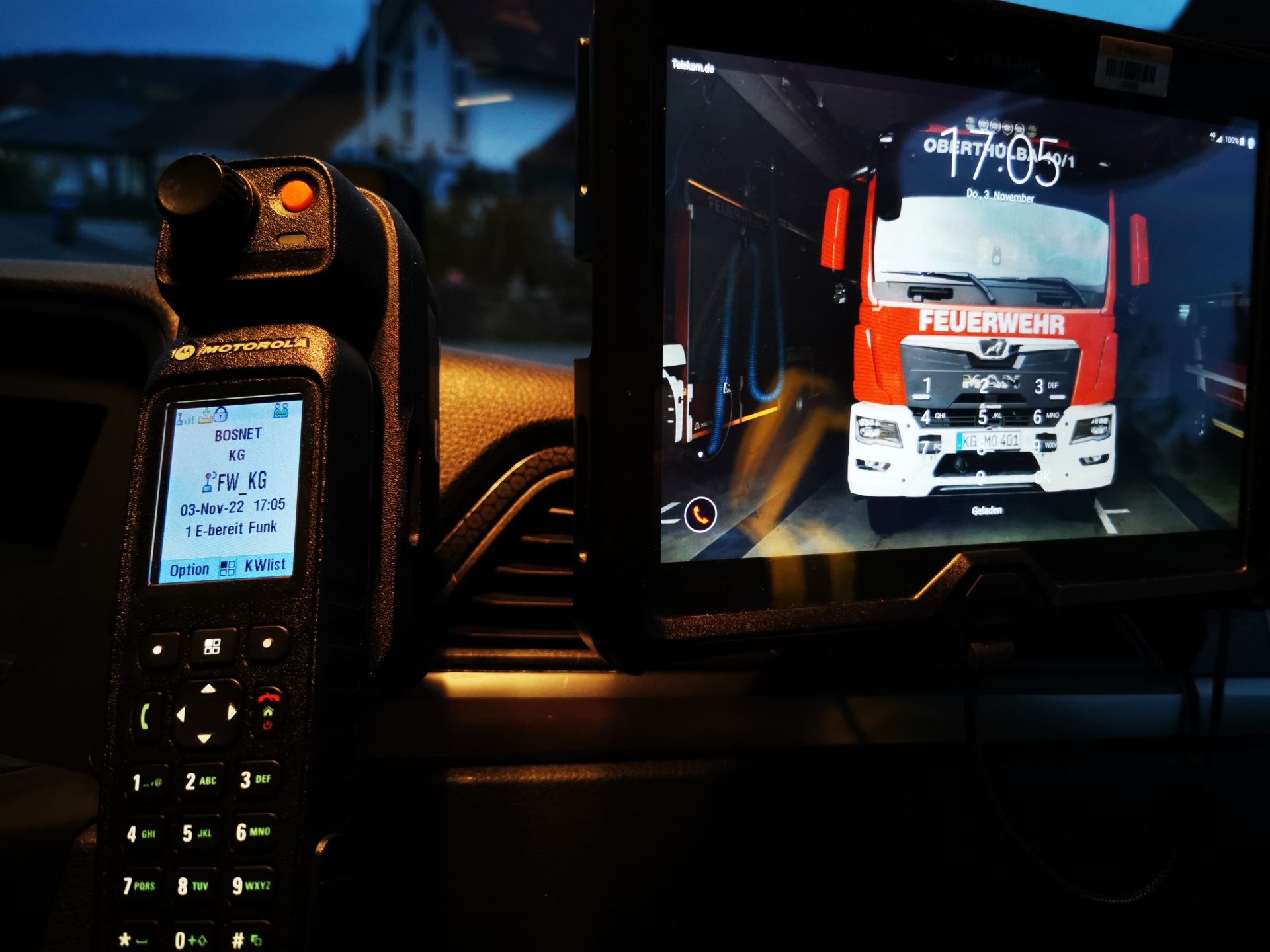 Sind die benötigen Einsatzmittel durch den Disponenten ausgewählt, werden diese alarmiert. Über das TETRA-Funknetz werden die digitalen Funkmeldeempfänger der Einsatzkräfte sowie, je nach lokalen Gegebenheiten, die Sirenen in den Ortschaften ausgelöst. Die Einsatzkräfte werden so über den Einsatz in Kenntnis gesetzt und können sich nun zum Feuerwehrgerätehaus begeben.